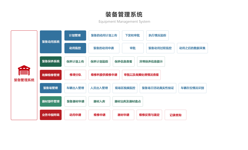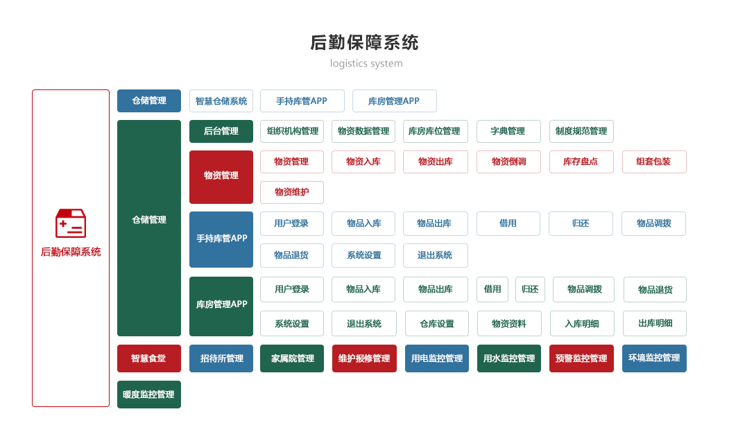 綜合保障系統(tǒng)依托物聯(lián)網(wǎng)、RFID識(shí)別和傳感技術(shù),著眼作戰(zhàn)精準(zhǔn)保障、戰(zhàn)備常態(tài)保障和官兵生活保障,對(duì)戰(zhàn)備物資、裝備器材、營(yíng)房物資和被裝物資等的全生命周期的電子化管理,對(duì)官兵的健康實(shí)時(shí)監(jiān)護(hù)。包含財(cái)務(wù)管理、軍需油運(yùn)、武器裝備、衛(wèi)勤管理、營(yíng)房管理模塊。確保部隊(duì)出動(dòng),車(chē)輛給養(yǎng)油料跟得上,裝備維護(hù)情況實(shí)時(shí)掌握,營(yíng)房管理工作平時(shí)與戰(zhàn)備同步推進(jìn)。